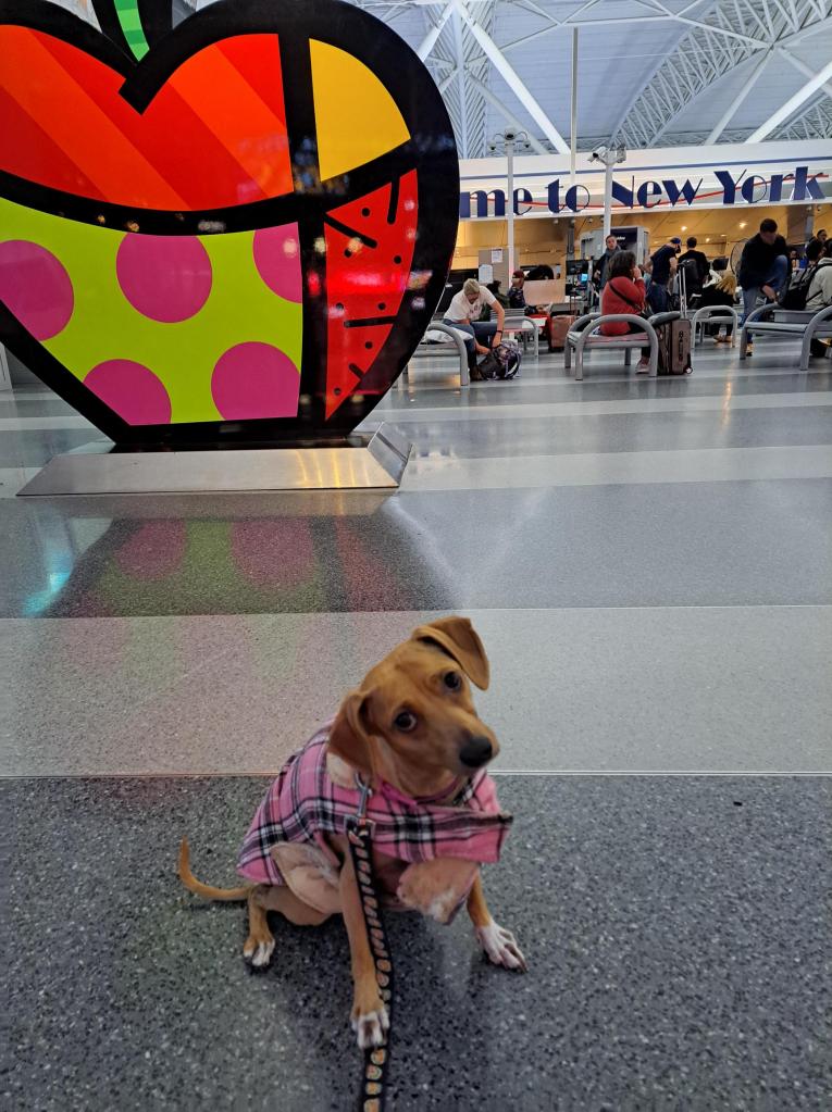 We arrive in NYC in a downpour. Nothing I would have cared about if I was by myself, but I had a dog who hadn’t gone potty since 7am AZ time. She didn’t seem to care when I took her to a potty station at airport.