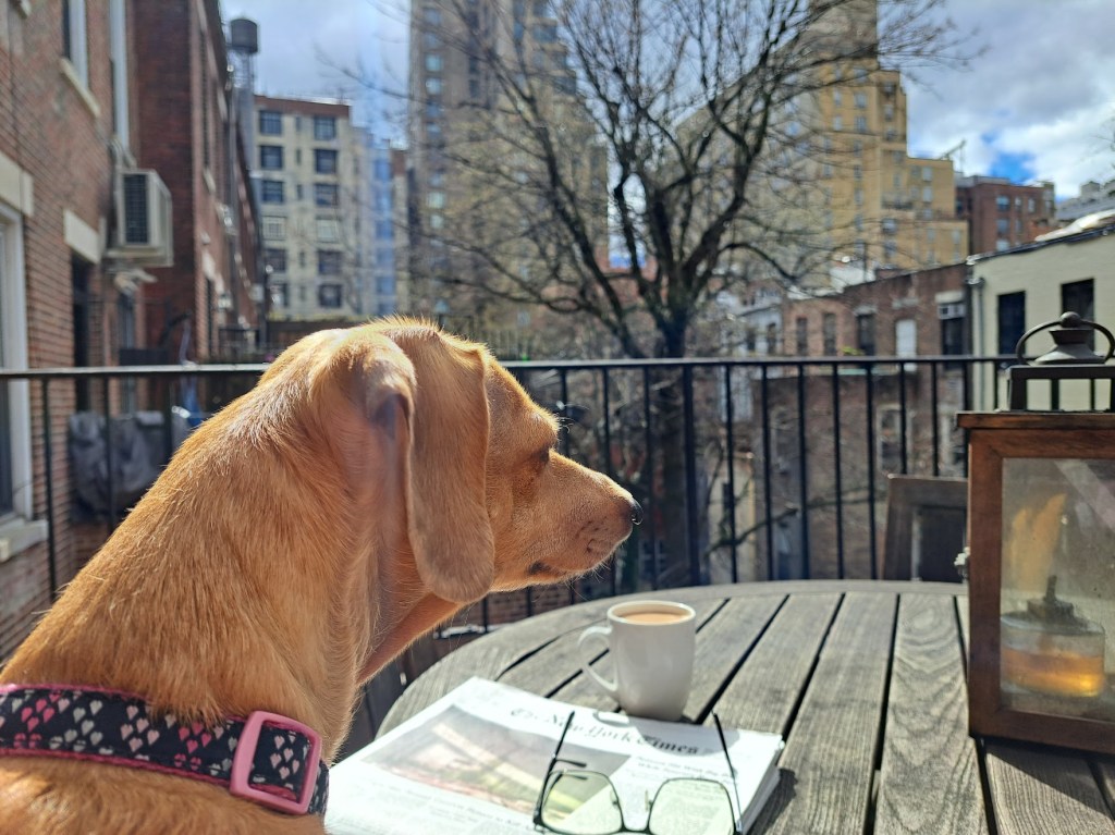 I am so grateful to come home to Frida, a sunny deck and the Times, in NYC.